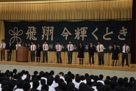 | ■次第: | 1.出場クラブ紹介 2.校長あいさつ 3.保護者会会長あいさつ 4.同窓会会長あいさつ 5.生徒会代表激励のことば(生徒会会長) 6.出場クラブ代表お礼のことば(テニス部主将) |