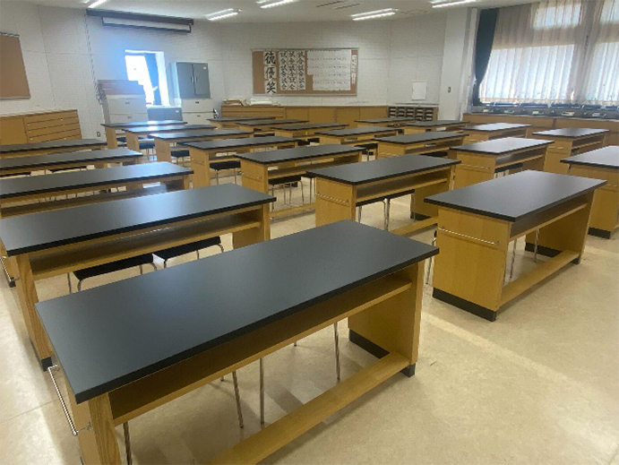 「書道室」「美術室」「家庭科室」「音楽室」「理科系実験室」の特別教室において、環境整備の一環として改修工事を実施しました。