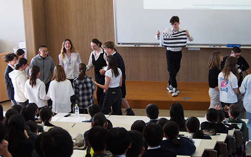 毎日1時間は、フランス生徒と本校バディによる日本語を使った交流会が行われました。交流会では、フランス生徒が日本語で行うスピーチ作成をバディがサポート。その後のスピーチ大会では、日本の印象や日本文化について、気持ちのこもったスピーチを聞くことができました。